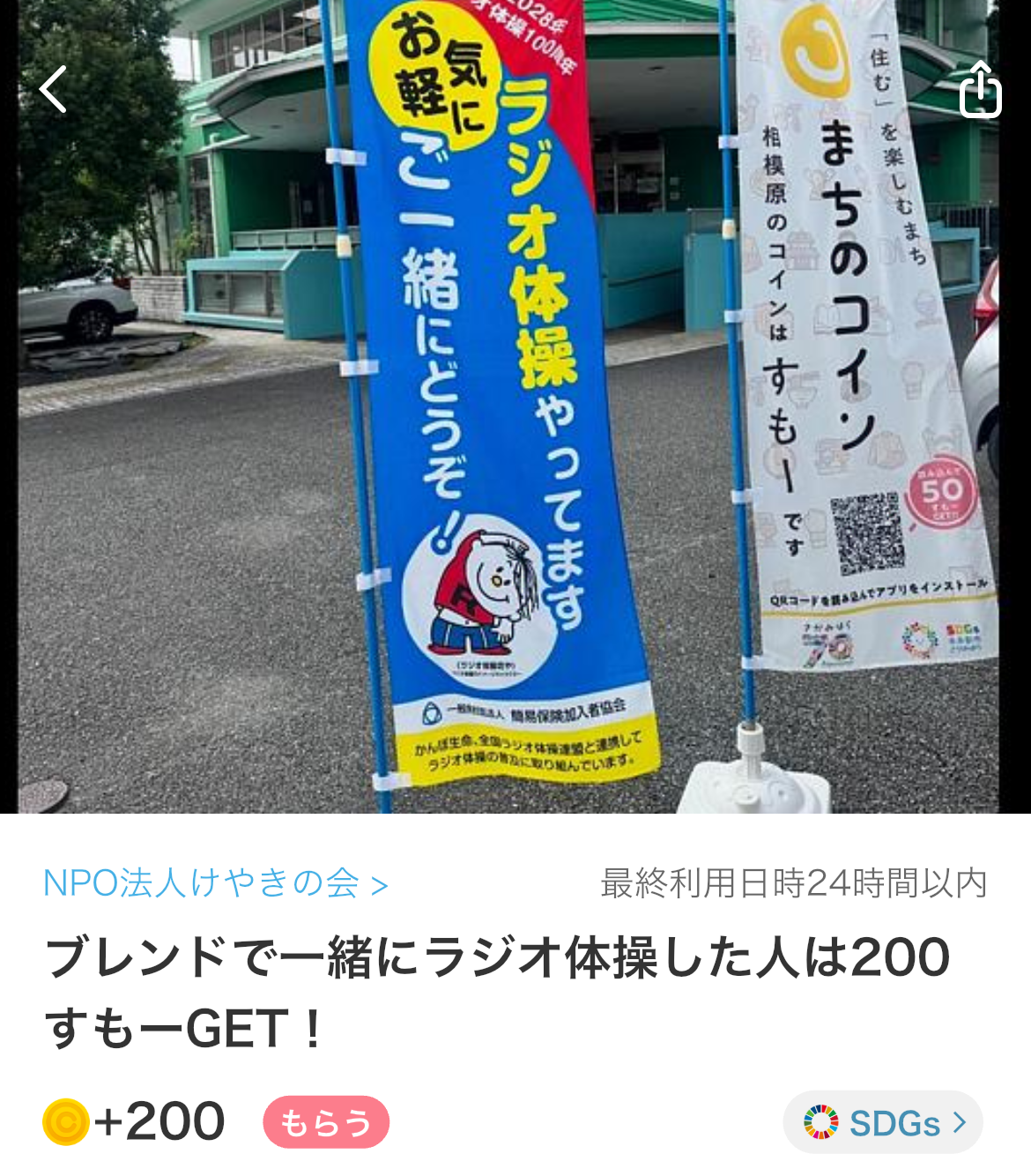 今後も継続的に体験を作成、管理していきたいです。今ジョギングにハマっているので、ジョギングの企画をまちのコインでしようか考えています。