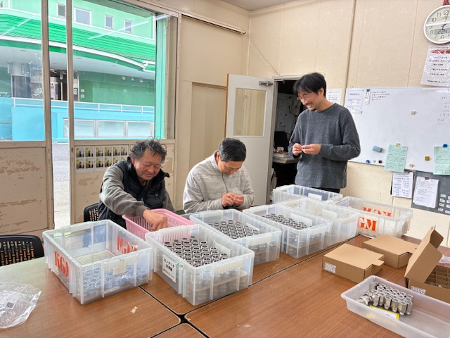 よろしくお願いします。第二けやきでは、普段、金属部品の作業、梱包や草むしり、ポスティング、けん玉活動やイベント参加など幅広い活動をしています。