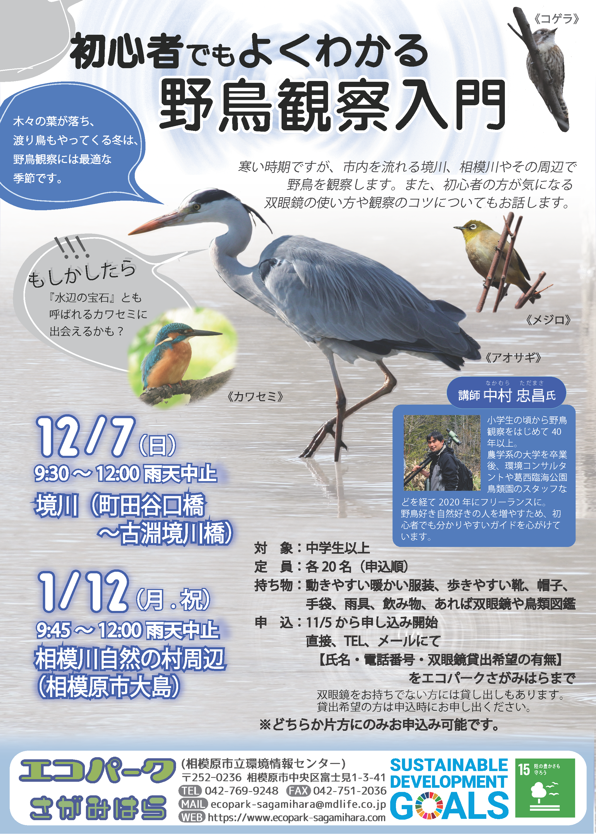 ※申込時必要事項:講座名、参加者氏名、電話番号、双眼鏡貸し出しの有無