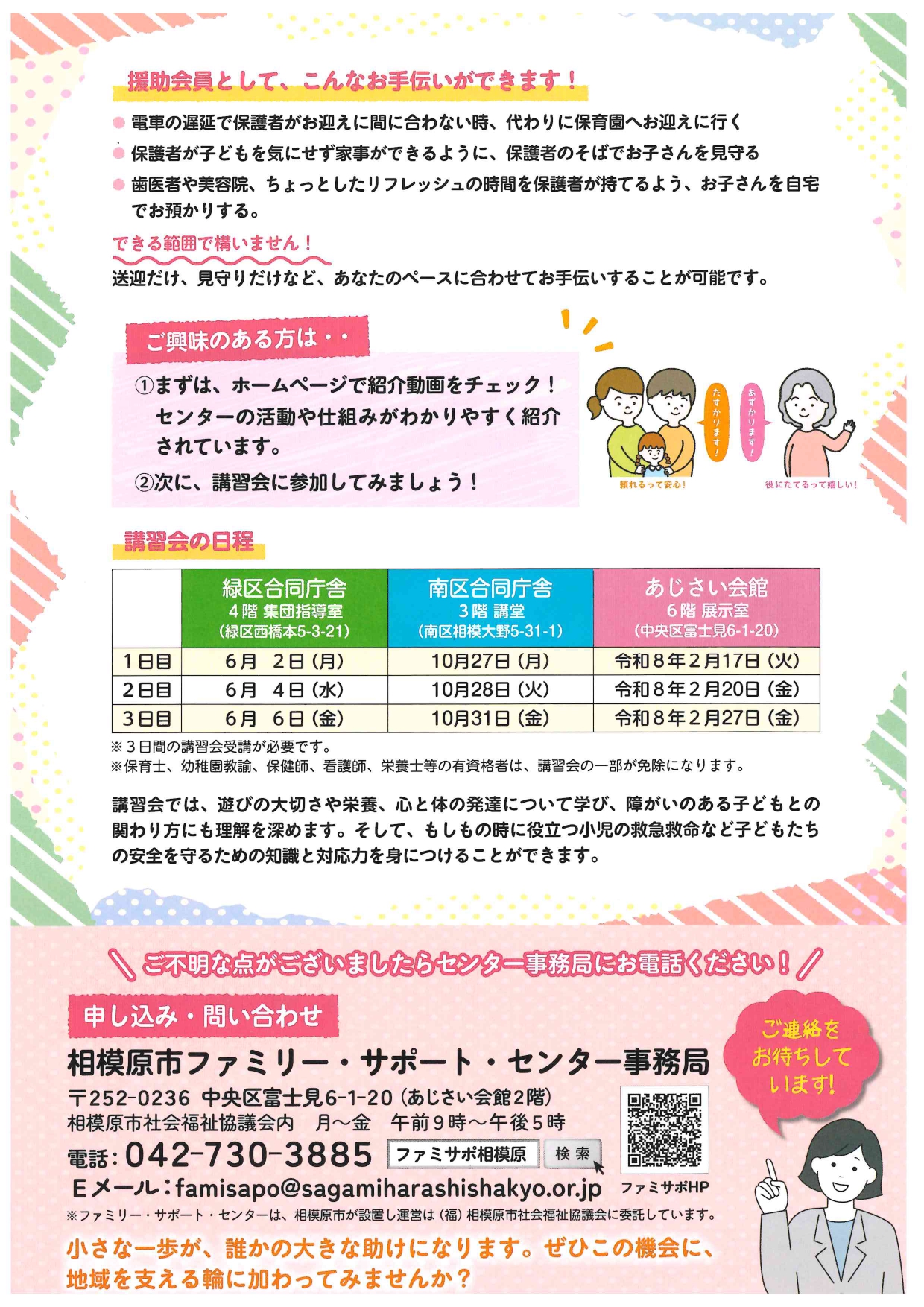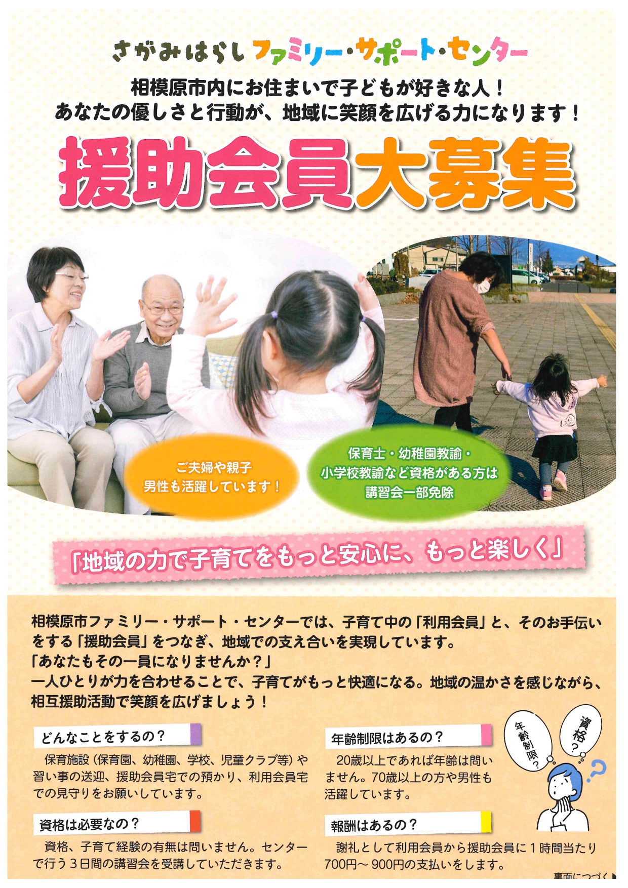 相模原市ファミリー・サポート・センターでは、子育て家庭を地域で支える「援助会員」を募集しています。