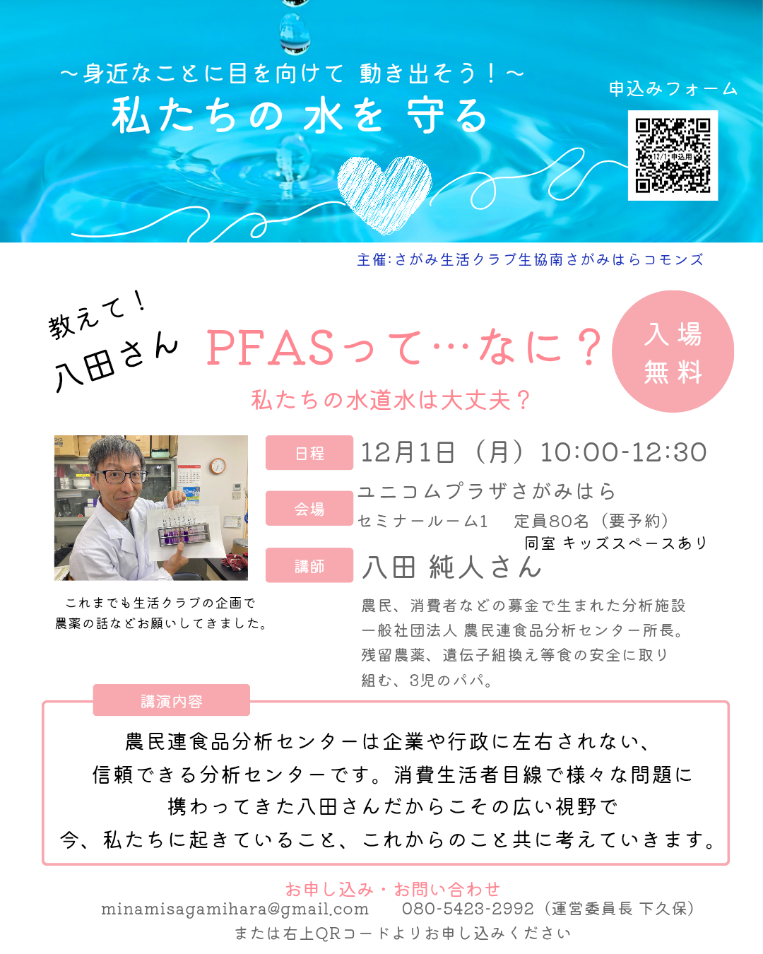 主催チームより、相模原のPFAS汚染の現状もお伝えしたいと思います。是非ご参加ください。