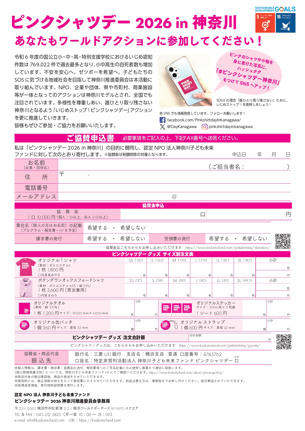 ・ハッシュタグ「#ピンクシャツデー神奈川」等を付けてSNS等で情報発信
